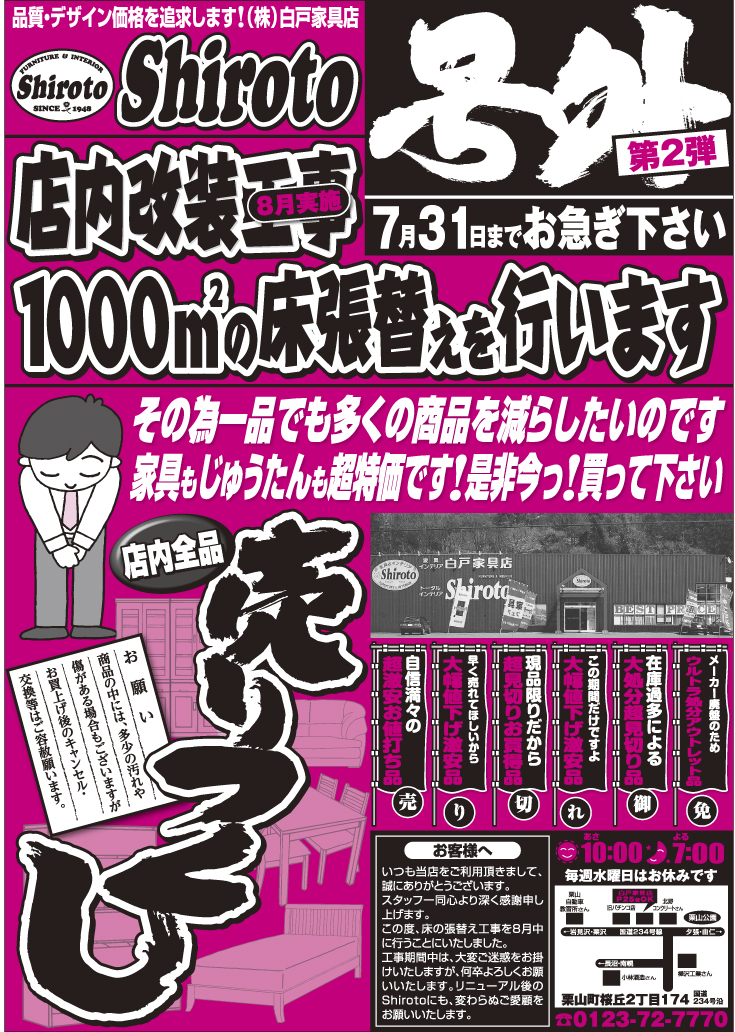 どうぞ「白戸家具店」を宜しくお願い申しあげます。